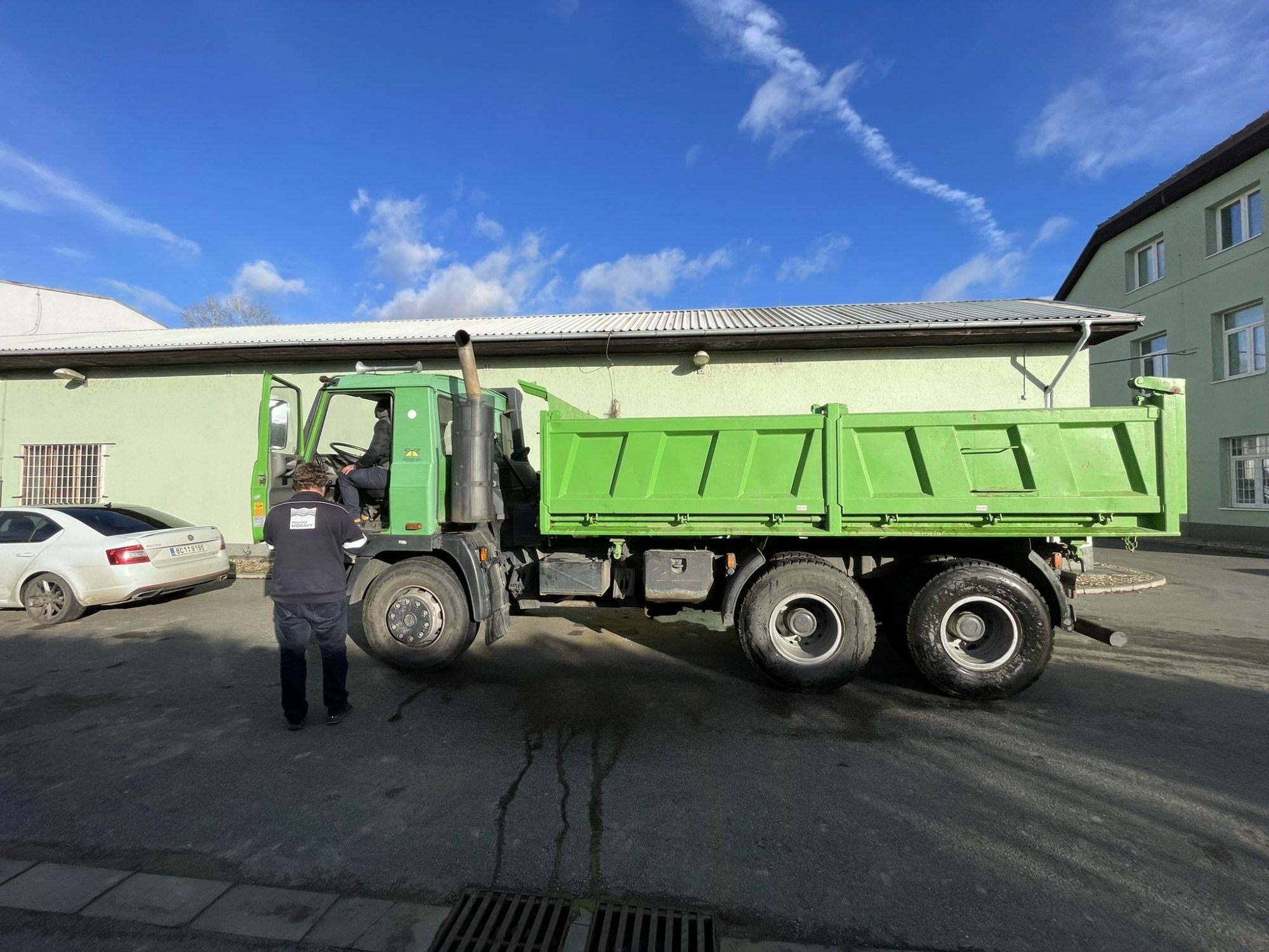 Dopravu sypkých materiál provádíme také nákladním automobilem s třístrannou sklápěcí korbou Tatra 815 Terrno 1